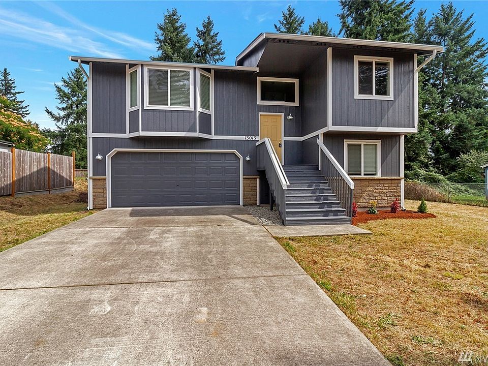 Welcome home to your turn-key ready 3 bed 2 full baths 1,355 sq.ft. split level home on a 8,400 sq.ft. flat lot in desirable Prairie Ridge community. Kitchen features oak cabinets, island, flowing into LR and DR w/ vaulted ceilings. 2 car garage attached with paved driveway for extra parking. The back yard is fully fenced with newly landscaped yard. Family room/ Rec room on LL. New fresh paint exterior/interior of home. Convenient Bonney Lake location - close to schools, shopping center.