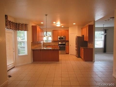 Beautiful home needs new tenant to rent from December 1 to July 31, 2021. Open kitchen with eat in area with stainless appliance, and family room, Walk out to the large concrete patio with lovely trees surrounding the yard. Formal dining room and living room area as you enter through the front door. Front covered patio ready for your swing. Upstairs includes the 5 bedrooms with Master bathroom and a loft too. Basement has a Large room that is ready for entertainment with theater seating ready for your chairs. Walk to the club house, play ground, park, and outdoor pool. 1 dog acceptable under 40lbs with pet rent and non refundable pet fee. No cats or smoking.