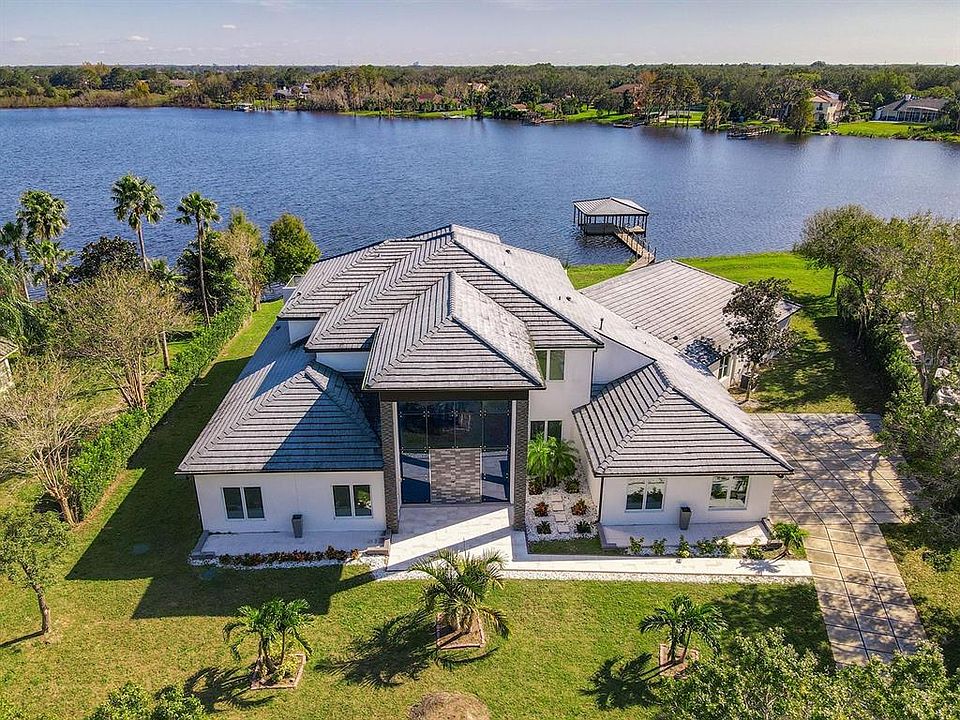 One or more photo(s) has been virtually staged. INCREDIBLE VALUE on this STUNNING LUXURY LAKEFRONT ESTATE IN WINDERMERE with OVER AN ACRE LAND and 8755 SF under air (over 10,000 total square feet). Priced BELOW APPRAISAL. This SPACIOUS and BRIGHT MODERN residence has been fully RENOVATED, has been granted the certificate of occupancy and is only awaiting your personal finishing touches. This home has 7 BEDROOMS, which 2 are masters, and 6.5 BATHROOMS. As you enter through the open foyer, you will be mesmerized at the floor-to-ceiling walls of 1.5" blue glass panels, floors with 21" crystal gloss PORCELAIN tiles and 24' high ceilings. A beautiful glass staircase welcomes you into the formal living and dining areas. Enjoy breathtaking lake views through the 10' high glass windows and doors from the voluminous 46'x20' great room or the 1057-SF lanai. Gorgeous custom Italian cabinets and bar adorn the kitchen and great room. 5 bedrooms have ensuite bathrooms and 2 are connected through a jack-and-jill bathroom. 4 bedrooms are downstairs and 3 upstairs. Other rooms include an office/den and bonus room that can serve as a theater. Renovations include: new plumbing with 70 PSI, new electrical with 500 amps, 2 new HVACs for up to 12 tons total, 2 new water heaters, industrial strength spray foam insulation and so much more. Roof was replaced in 2016. Lake Roberts is a 113-acre waterskiing lake. Waterford Pointe is a waterfront gated community offering private roads under majestic oak tree canopies, tennis courts, clubhouse, boat ramp and playground. Close proximity to Disney area, shopping, dining, schools and major roads.