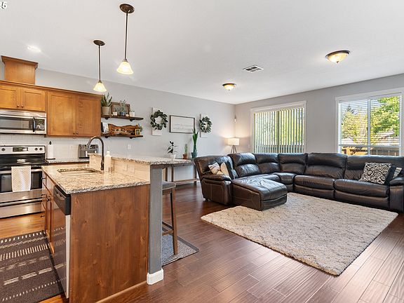 3 bedrooms 2 1/2 bathrooms, 1624 sqft, built in 2016. Great room style floor plan with laminate floors. Living room with fireplace is open to dining. Kitchen has granite countertops, stainless dishwasher, island, built-in microwave and pantry. Upstairs laundry room. Primary bedroom has vaulted ceilings, walk in closet and attached bath. Open loft area upstairs. Quiet neighborhood.