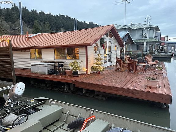 This floating home is an incredible price for Marina Way Moorage, a very sought after marina. Houses here rarely come on the market. You are in for a treat at this artist retreat. Easy living one level home with sweeping views of the Multnomah Channel, Sauvie Island, and Mt. Hood. Entering the home there is an enormous flex/mud room, a great place to hang the dog leash, drop off coats and groceries-so much storage! Next you'll pass through the bedroom with room enough for a king size bed. Wood clad walls throughout add charm. On to the bath with clawfoot tub and skylight, across the hall is the walk in laundry room (more storage). Then, big ohhh-aaahhh, the open kitchen and living room with high wood clad ceilings, cozy wood fireplace, new French doors, quaint octagon windows, and new ceiling fan. Homeowners at Marina Way Moorage are shareholders in Marina Way and therefore they "rent" the slips from the corp. Slip rent for this house is 298/month! Just the slip alone is worth the asking price. Fix up the house and float or build new. Current house needs a new float. Pet friendly and owners get a parking space with their name on it, extra parking, and one space in the boat or RV area. It gets better, there is a boat launch too. What are you waiting for? Come soak in the sunrise of your new life on the river. CASH ONLY. No seller financing. Marina Way Moorage is an owner occupied moorage - Rentals are not allowed.