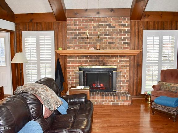 NEW LISTING! Fabulous ALL BRICK RANCH located in the desirable RIVER BLUFF FARM subdivision! NORTH OLDHAM SCHOOL DISTRICT and so convenient to Prospect shopping. Move right in! Welcoming foyer opens to stately living and dining rooms and VAULTED FAMILY ROOM with wood-burning FIREPLACE and plantation shutters. No carpet! Mostly HARDWOOD FLOORING throughout. Bright and cheery kitchen boasts an abundance of updated cream cabinets, pantry and breakfast/dining area with large window and door accessing the large stamped paver PATIO with fully fenced yard. Very private and a perfect setup for entertaining! Sizable MASTER BEDROOM suite. Two additional bedrooms (one converted to an office which can be accessed through hall or foyer) and full bath with walk in shower and double sink vanity. The BASEMENT is finished with two additional rooms. One currently is a bedroom (no egress window). The unfinished section of the basement area is enormous and houses the laundry area. It is perfect for additional storage or workout/workshop space. So many additional recent updates to mention: Newer roof, HVAC AND WATER HEATER. Well-maintained BEAUTIFUL home and pride of ownership DEAD END neighborhood (no through traffic). Don't miss out. Call today!