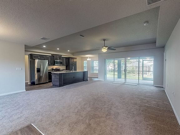 Rare new construction in coveted East Linden Estates on hands-down the best ½ acre corner lot in the community! This custom Palmwood-built is fully finished and ready! Open concept 3-bedroom features a flex-room with closet, formal dining and breakfast nook, and quadruple glass doors that open onto an oversized screened porch for that fabulous Florida lifestyle. The kitchen is an entertainer's dream with a stainless appliance suite, solid wood, soft-close cabinets, granite and custom hardware highlighted by a solid-slab kitchen island open to the great room. The master suite features his/hers closets, sliders to the lanai, and a gorgeous 4-piece bathroom with custom tile. Homes sit well back and above the street, with not just freshly laid floratam, but mature fruit-bearing trees, Crepe Myrtle, native shrubbery, and live oak. Low HOA dues, super-efficient insulated glass and ac/heat pump system, a well-established stately neighborhood, and a location convenient to all that is cherished on the Nature Coast make this your forever home.