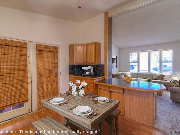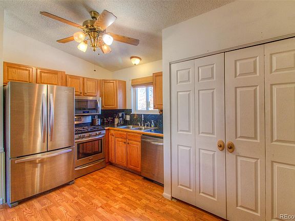 You found it - that perfect all on one level home. It maybe small but it feels so much bigger with it's open floor plan and vaulted ceilings. The large living room has vaulted ceilings, a stunning wood burning fireplace, a bay window plus it opens up to the kitchen. Great kitchen with lots of cabinets, granite tile countertops, newer appliances including a gas stove/oven just what you wanted. There are two large bedrooms. The master bedroom has it own private door to the bathroom. The front 2nd bedroom has two closets. The full bathroom has been recently updated with newer vanity, toilet and flooring. There are newer 2-panel interior doors and ceiling fans in the bedroom and kitchen. Sweet! The back porch/deck has been enclosed to give you an additional 242sq of unheated but enjoyable living space. Yes - it has an oversized two-car garage with wall of built-in cabinets and of course a garage door opener. Nice! The home sits on a big yard with under sprinkler front and back. You will stay cool in the summer with the Central Air conditioner that is only a year old. The roof and the windows are newer too. Great location close to C-470 and the mountains. See - you found it!