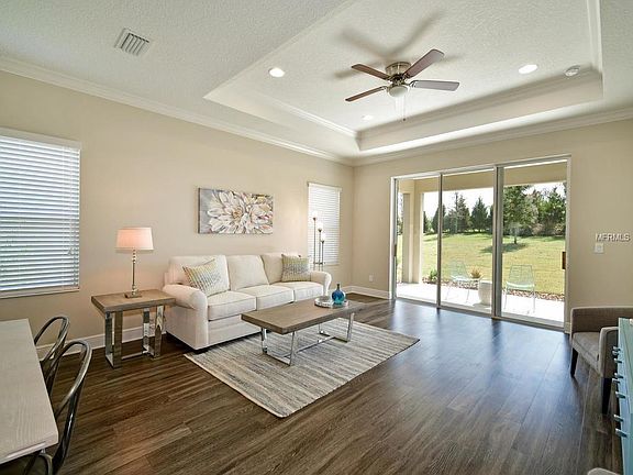 - Interior Features: Ceiling Fans(s), Living Room/Dining Room Combo, Crown Molding, Walk-In Closet(s), Window Treatments, Solid Surface Counters, Tray Ceiling(s)