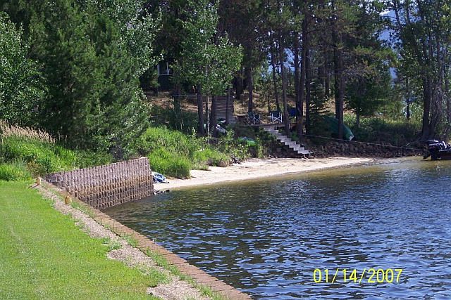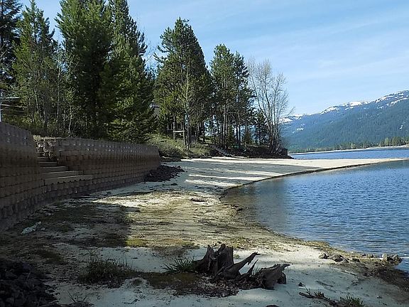 Hard to find waterfront lot looking across the Lake to West Mountain and Tamarack Resort, expensive retaining wall of pavers and concrete steps.. Outstanding views to West Mountain. , Bring the pontoon boat and start playing. RV use allowed, no ccr's.
