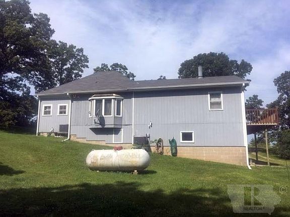 Nestled on a wooded lot just east of Rock Creek State Park on Hwy F-27! Original structure was country school house that has spacious MBR, full bath and den or 3rd BR plus lovely modern kitchen with newer appliances & DR with blt in hutch. In 1973 an addition was added on North side that features a spacious LR with a brick fireplace & lovely built-in hutch, large BR and full bath. 2 furnaces & 2 CAs new in 2012, breaker box in bsmt updated July 2019. Roof has been reshingled. There are 2 septic tanks that have been filled in as Owner hooked up to sewer line that runs along West side of road. Property being sold AS IS no warranties expressed or implied. Furnace & breaker box in garage for North addition. Furnace & breaker box in bsmt for rest. Buyer shall reimburse seller for remaining LP left in tank at closing. Curtains in MBR that match bedspread do not stay. Free standing cupboard in kit stays.