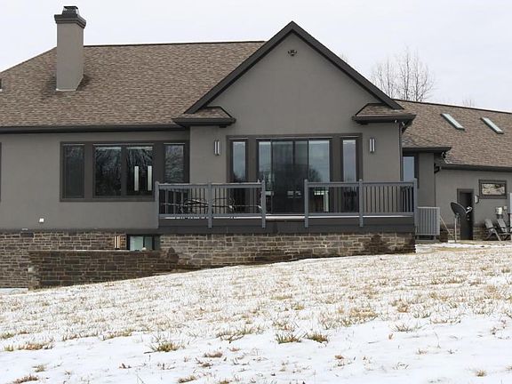 This gorgeous, one-of-a-kind, custom built in 2014 has it all.Situated on 4.6 acres. Gourmet chefs kitchen that includes: 10'x6' Quartz island, Quartz countertops/backsplash, custom cabinets, double convection, 60'' hood with separate in line vent, 2 dishwashers, built in microwave, dual sinks, ice maker, wine and beer cooler, six burner stove (including griddle/char broiler and pot filler), walk in pantry. Other amenities include: custom porcelain tile, 4 1/2 car garage, w/finished loft that operates on a separate thermostat, whole house generator, whole house speaker system, central vac, wood burning fireplace, Master bath has Quartz countertops. Finished lower: 3 bedrooms (2 w/private baths), custom built storage closet, wet bar, walkout basement w/concrete patio half covered. Must see!