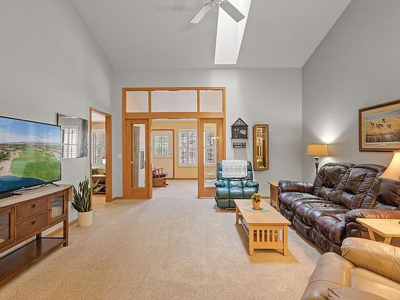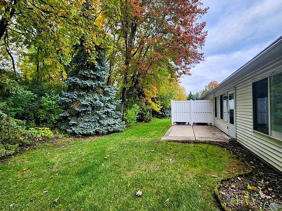 Beautiful end unit rambler style townhome in the demand Eagle Creek Bluff Neighborhood that's conveniently close to shopping, schools and numerous parks and trails. This special home features an eat-in kitchen with ceramic tile floors, granite countertops and plenty of cabinets and counter space. A spacious living room and adjoining dining room with dramatic vaulted ceilings with skylights and a ceiling fan. Main level four season sun room that leads to a private backyard patio that's surrounded by trees and shrubs. Two bedrooms on the main level including a spacious primary bedroom with a large walk-in closet, ceiling fan and private bathroom that was recently updated. Bonus second bedroom that could be used as a den or reading room, and a full hallway bathroom with ceramic tile flooring. This home is a must see!