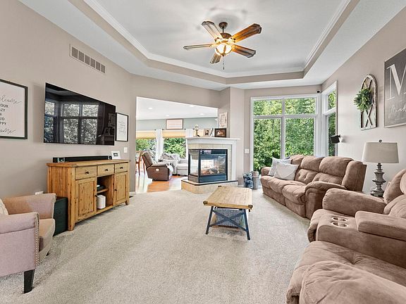 This immaculate Buescher built 3 bed 3.5 bath ranch w/ finished basement & wet bar in Carroll Schools on a cul-de-sac is sure to impress with upgrades galore! From the second you pull up, you will notice wonderful, mature landscaping. Enter under the covered front porch & through the foyer & you are welcomed w/ open arms by this open concept home! Large windows + transoms allow for natural daylight to pour through the main floor. The peninsula fireplace transitions you from the living room and into the kitchen/dining area. A big kitchen gives you a variety of options as it features a cooktop, oven, tiled backsplash, newer appliances, & tons of cabinetry & countertop space. The main floor laundry has a washer/dryer that remain with the sale of the home as well as a utility sink & cabinetry/countertop for folding. This split bedroom floor plan allows for maximum privacy in the large master bedroom. The completely remodeled en-suite features dual vanities, vinyl plank flooring, a garden tub, ceramic walk-in shower, and closet w/ tamers. The guest bedrooms on the other side of the main floor are adequate in size and share a full bath. Downstairs you will find a recently finished basement complete with a large wet bar, den/office space w/ french doors, full bath, & massive living area that can be laid out in a variety of ways to suit your needs! Relax out back on the brand new deck & feel at peace w/ the wooded backdrop and fire pit! The 3 car garage allows for ample car and storage space. Some other updates include: New WiFi Heat Pump WH, HE Furnace & AC, numerous windows, front door, dual sump pumps w/ battery back up, main floor carpeting, invisible dog fence + collar, rough plumbed for irrigation, many smart switches throughout, Xfinity Home Security Window/Door Sensors & Interior/Exterior Cameras. Don’t miss your opportunity to purchase this incredible home w/ tons of big expense items already taken care of for you just minutes to Parkview Regional Medical Center, easy access to I-69, & just down the road from tons of shopping & restaurants!