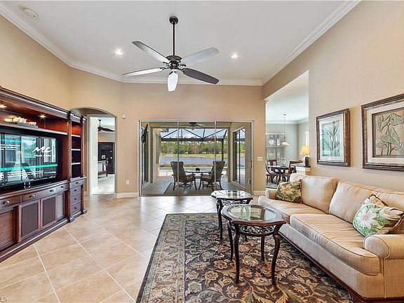 Enjoy the Fabulous Lake & Golf Course View as you look through the large Picture Window Pool Cage. Furniture Negotiable. 2 Bedroom+Den, 2 Car Garage. Soaring 10' Ceilings in Family Room & Formal Dining Area. Upgrades Galore. Tile on the Diagonal, Crown Molding Throughout Home, Tray Ceilings in Dining Room & Master Bedroom. French Doors open to Den w/Custom Desks & Cabinets, Upgraded Wood Floor & Murphy Bed. Kitchen has Custom Cabinets, Granite Counters & Appliances. Kinetico Water System. Casual Dining area has lots of Windows! Huge Master Bedroom w/Walk-In Custom Closets+large Shoe shelf. Master Bath has Dual Sinks, Shower & Tub. Electric Hurricane Shutters on Lanai & Front door; Accordion shutters on sides of home. New Pool Heater & Pump (2017). Remote Thermostat. Overhead Storage in Garage. Exterior Freshly Painted (2019). Golf Membership Available, but not Required. Residents enjoy Clubhouse w/Bar & Grill. Amenity Center w/Resort Style Pool & Spa, Har-Tru Tennis Courts, Pickle Ball Courts, Fitness Center, Billiards & Library. Hurdzan-Fry designed Golf Course. Close to Boston Red Sox & Minnesota Twins Stadiums, I-75, Shopping Malls, Restaurants & Southwest Florida Intl Airport.