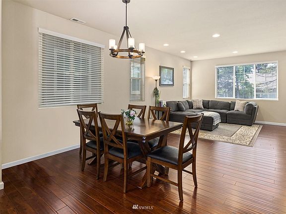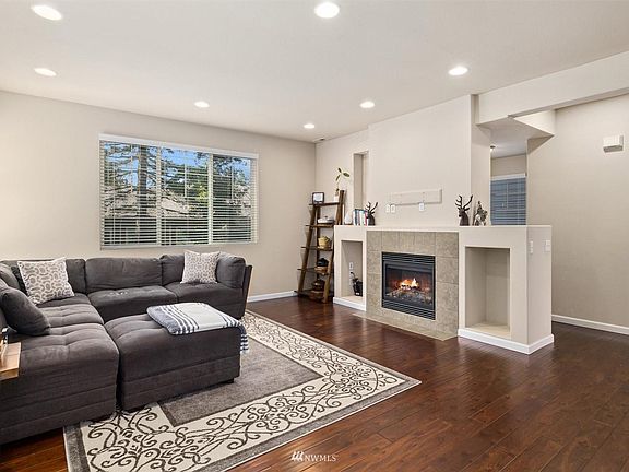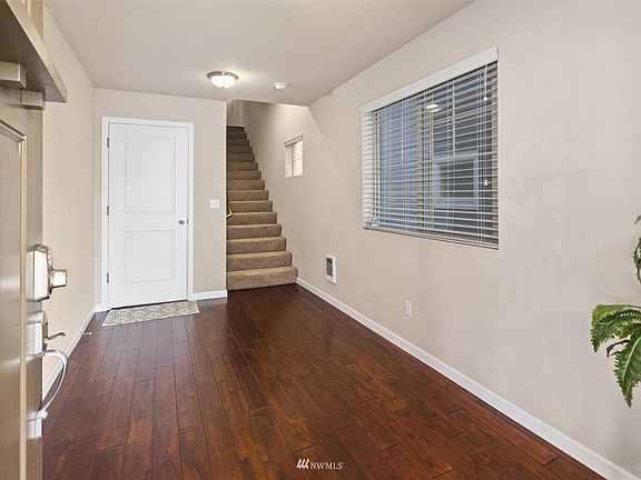 Spacious stand-alone townhome in a secluded gated community. Features an open floor plan with beautiful hardwood floors, vaulted ceilings, large windows and a cozy gas fireplace. Large living/dining rooms plus dining nook with walk-out balcony. Dreamy open kitchen with island, granite slab & SS appliances, great for gathering. Expansive primary suite with 5-piece bath & walk-in closet. Oversized 2-car garage with room for storage. Well-maintained community offers a playground, soccer field, dog run, car wash area and plenty of guest parking. Low HOA dues cover water/sewer, lawn service & road maintenance. Next to the Interurban Trail, and walking distance to shops & restaurants. Easy access to highways.