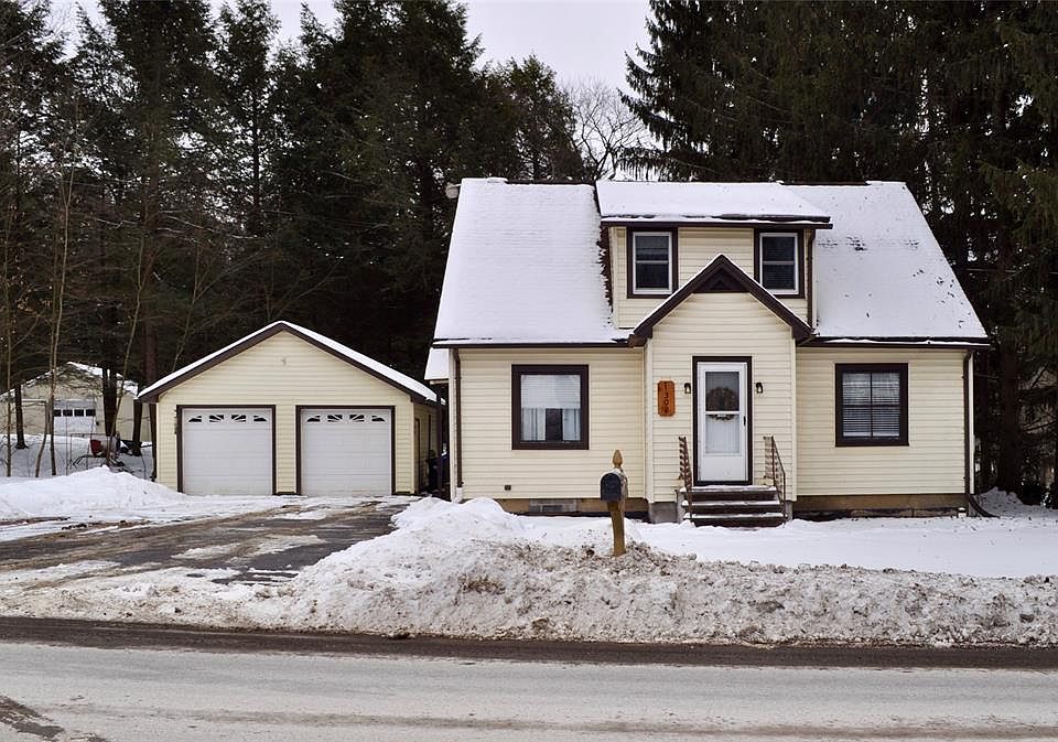 Beautiful Cape Cod home and this truly unique property features a "magic of the season" Christmas tree farm on 4 of the nearly 10 acres. Folks have been coming to Farro's farm for over 25 years in search of the perfect tree! The home features attention to detail updates with an open floor plan, gorgeous new kitchen, attached dining room, first floor master bedroom, and pristine full bath. The generous sized living room flows nicely into the family room featuring a Harman pellett stove. There are nice hardwood floors throughout and brand new cozy carpeted areas in hallways, stairs, and bedrooms. The open 20 x 14 Deck is perfect for entertaining, Pole Barn is 24 x 24, and the 2 car garage is oversized and features a wreath making area studio. The grounds are breathtaking with picturesque views of the most beautiful trees and trails. Own a move-in ready home and the ability to operate a side business or just enjoy the countryside!
