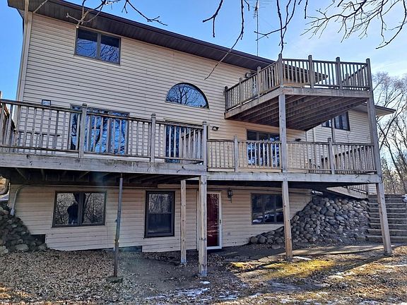 Nestled on 10 scenic wooded acres with channel frontage to the Mississippi River. Beautiful paver stone patio with fire pit and a large deck for outdoor relaxing and entertaining. Primary bedroom has it’s own private deck and a full bath with separate shower and tub. The primary also has direct access to a large, finished bonus room over the garage. There are two additional bedrooms and 2nd full bath on the upper level. Main floor living room has fireplace and amazing views. Walkout lower level has a large family room with kitchen area, full bath and 2 additional bedrooms. Fantastic private acreage only minutes from St Cloud and easy commute to the Twin City metro area.
