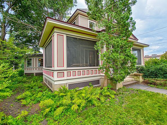 Step into timeless elegance with this stunning 4-bedroom, 3-bath Victorian beauty in the heart of Hudson’s cherished historic district. Meticulously preserved and thoughtfully updated, this architectural treasure blends old-world charm with modern comfort. A hand-carved staircase and beautiful leaded windows set the tone for the exquisite craftsmanship throughout. A quaint library with pocket doors opens to the spacious family room, where oversized bay windows flood the space with light, while elegant pocket doors also lead to the formal living room. The chef’s eat-in kitchen is both expansive and inviting, complemented by a gracious dining room perfect for memorable gatherings. Upstairs, bedrooms feature dedicated sinks—a whimsical nod to the home’s Victorian heritage. Enjoy year-round relaxation in the sun-drenched four-season room, private balcony, or screened-in porch. With intricate details, generous living spaces, and an unbeatable downtown location, this rare gem offers a chance to own a piece of Hudson’s rich history.
