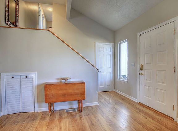 WOW! Don't miss this beautifully updated home situated on oversized lot with water views in popular Timberline subdivision. Vaulted ceilings, freshly painted interior and new flooring welcome you to the open living spaces with plenty of natural light. Centrally located kitchen includes stainless steel appliances and a breakfast bar. Large family room is highlighted with fireplace & built in shelving. Retreat to the master suite with walk in closet and "spa like" bath with vessel sink, custom lighting and upscale shower. Enjoy outdoor living on the deck with views of water and blooming perennials in the landscaped backyard with garden shed for extra storage. Pre-inspected and move in ready!