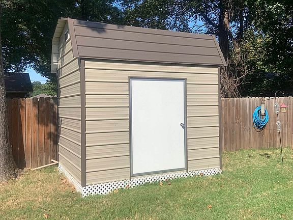 Beautiful 3BR, 2BA, upgrades in last two year, Roof, windows, blinds, paint, carpet, laminate, patio awning, some fencing, storm doors, patio doors w/screens, painted cabinets, lg. custom shower in MBath and storage bldg. CH&A app. 6 yrs. old. LR with semi-vault ceiling, opens to the dining area. Kitchen w/breakfast bar, formica that looks like granite, stainless/black appliances including refrigerator. MBR w/boxed ceiling. Privacy fenced back yard. Awning over patio. SEE AGENT REMARKS