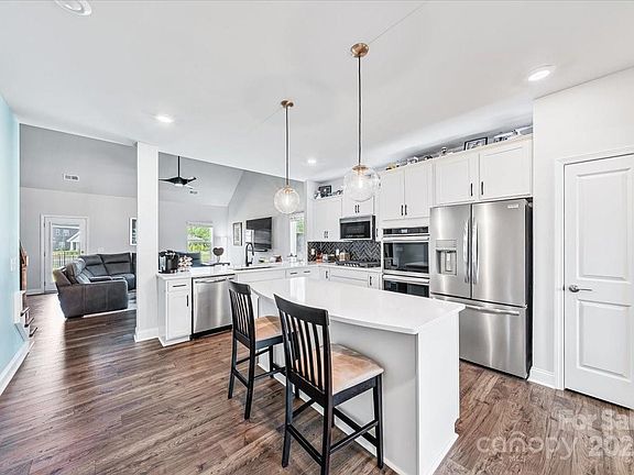 Nestled in the charming Medlin Forest community located in Monroe, and situated on a desirable corner lot, this stunning two-story home boasts 2,408 square feet of elegant living space. Built in 2023 and meticulously maintained, this home offers a like-new experience. With an open floor plan that basks in natural light, it features four bedrooms, 2.5 baths, a vaulted family room. and a dining room with elegant coffered ceilings. The gourmet kitchen is a chef's dream, showcasing stainless steel appliances, pristine white staggered cabinets, quartz countertops, double ovens and a gas cooktop. The primary bedroom is conveniently located on the main floor, while the beautifully stained oak treads lead you upstairs to a spacious loft, three additional bedrooms, and a full bath with double vanities. This exceptional home is a perfect blend of comfort and style, ready to welcome it's new owners.