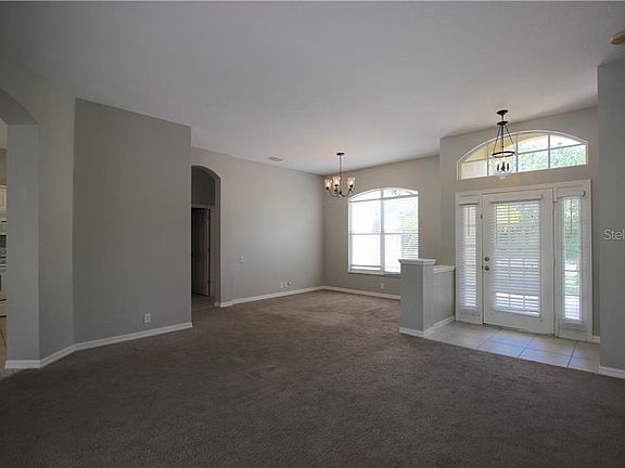Welcome home to your spacious 4 bedroom, 3 bathroom home in Greyhawk Landing with POOL AND SPA! Now available, this large 2300+ square foot home has a living room and dining area as you enter the home, with sliders and view of your in ground pool and spa with caged lanai. Open concept kitchen and family room with additional sliders to your pool deck, provide endless entertaining opportunities. Master bedroom suite features a large bathroom with double sink vanity, soaking tub and large separate shower. 3 additional bedrooms and guest bath, plus pool bath are located on the other side of the home. Fabulous nine foot ceilings throughout! AC was replaced in 2013. Neutral, and move-in ready in popular Greyhawk!