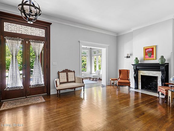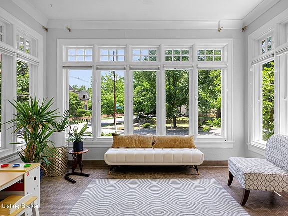 This beautifully updated 4-bedroom 3.5 bath gem is located conveniently in the heart of the Cherokee Triangle (Longest and Cherokee) only a couple of blocks from Cherokee Park and Willow Park, and near all the Bardstown Rd. offerings. The luscious landscaping in the front yard welcomes you onto the covered front porch. A stunning stairway, with gorgeous original stained-glass windows, an open living room with striking fireplace, a brilliant sun room, and a formal dining room with fireplace create an elegant setting and great flow. The family room opens to the dine in kitchen with its stylish white soft close cabinetry, quartz counters and GE appliances. A powder room completes the first floor. The second floor offers a primary bedroom and handsome and spacious remodeled bath, with soaking tub and walk in shower, double vanity, marble floors, and great closets. There are two additional bedrooms, a remodeled full bath, and the laundry is also on the second floor. Gleaming hardwood floors throughout first and second floors. The remarkably remodeled third floor with gorgeous new artist designed leaded windows, custom built in cabinets/bookshelves, surround sound and full bath is perfect as a bedroom suite or a game/media room/office, playroom, art studio...the choice is yours. The back deck off the kitchen is a sweet spot for dining and grilling and lounging, and leads to the very private and attractive backyard. There's a detached two car garage. (Above the garage is approximately 696 sq. ft. of living space with bathroom facility on the first level). This space could be remodeled for additional living/rental space. This area is sold as is and the square footage is not a part of the listing space calculations or pricing. Additional special features of this home include copper gutters, Anderson windows, Nest security system.