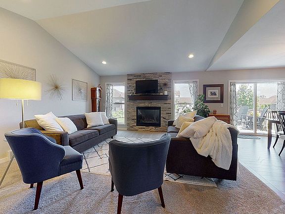 This well maintained home is in the highly desired Bowman Hills Neighborhood. This is the "Covington" floor plan built by Skogman Homes. This home is an open concept ranch floor plan with split bedrooms on the main level. There is a drop zone/laundry area from the garage and into the front entry. The living area has a vaulted ceiling with a beautiful stacked stone gas fireplace with custom mantle. The master suite is large with two vanities in the bathroom and a walk in closet with custom shelving. In the kitchen and dining area, there are granite counter tops and white subway tile backsplash to brighten it up. The oven/stove is gas.There is a deck off the dining area with a few steps leading to the back yard. The back yard has trees that were planted when the home was build. They are gaining maturity and provide extra shady spaces and homes for birds. Other wildlife, like deer, can often be spotted from the near by creek. In the finished basement, there is a large living space, and additional bedroom/ office space with large closet and full bathroom. There is also ample storage space in the unfinished portion of the basement with built in shelving. The three car garage has also been finished and is spacious enough for all the cars and all the toys! Call or email today for a private showing.