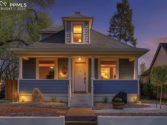 Fantastic location--just one block to Boulder park, a few to Memorial hospital, & about 1 mile from downtown! This lovingly preserved home blends historic charm with modern functionality. Most of the beautiful craftsmanship remains—original trim, 9-foot ceilings, crown molding, leaded glass, & wood floors. The living and dining spaces are naturally bright, warm & inviting. An eye catching, functional fireplace with a gorgeous brass insert, an ornately carved wood mantel, and original Van Briggle tile (along w humidified, forced air natural gas) warms you in the winter. And central air cools you in the summer! The spacious kitchen, with granite countertops and generous cabinetry, draws family and friends together with ease. This home is great for anyone, but due to having 2 bedrooms on the main and a 3/4 bath w a large, easy entry shower and bench seating, it also has a great set up for multigenerational living if needed. Upstairs, there are 2 more bedrooms with a full bath. The master bedroom--a large and inviting retreat--features vaulted ceilings and dormer windows that look out to a clear view of Pikes Peak. The backyard is truly your own private oasis; there you'll find established landscaping under umbrellas of large elm trees offering a peaceful escape. Enjoy the perfectly manicured lawn, patio, and water feature to de-stress after a long day. Up front, recent xeriscaping showcases high-quality stone and a dry riverbed with a footbridge, both enchanting & sustainable. And a full front/back irrigation keeps everything thriving with minimal effort. The R-2 zoning offers flexibility, and the home has 3 entrances--front, East side, and West side. The side entrance to the west is perfect for adding ramp access if necessary. Much has changed in Colorado Springs, but this turn of the century charmer still echoes with timeless warmth & waits for new owners to love it just as much as the current ones have. Full history of home and all past owners are also included.