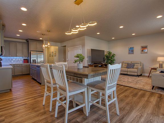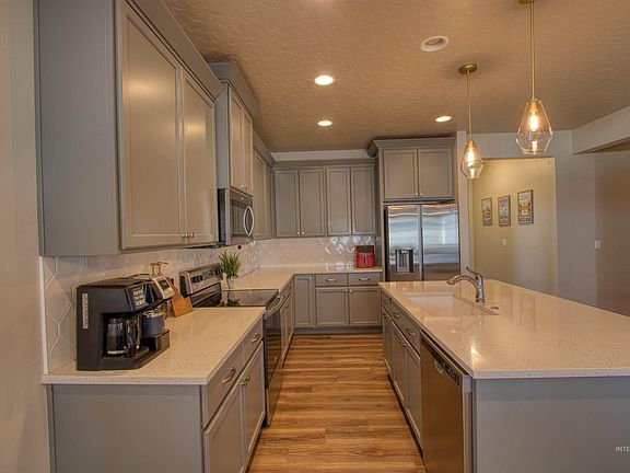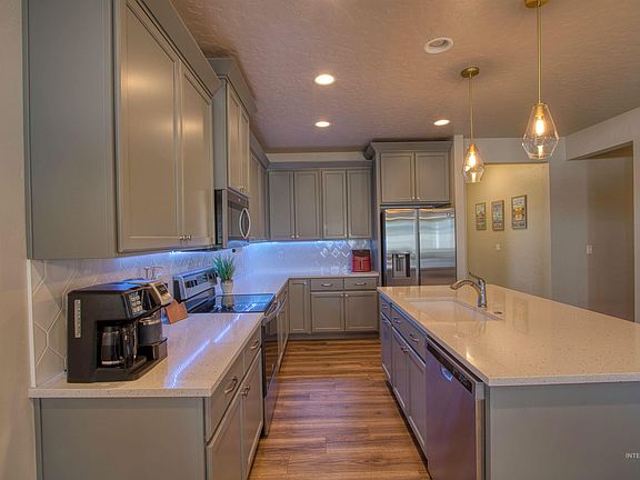 Welcome home to this modernized floorplan in Kuna! The "Elliott" by Coleman Homes speaks for itself with high ceilings, large rooms and a delightful neighborhood. This home has many upgrades that the owners added including: a covered patio, extra electrical and 220v in the garage, 30 amp outlet on the side of the house, can lights throughout, custom drop zone and den cabinetry, quartz countertops and upgraded blinds! The backyard is fully fenced with vinyl and offers RV parking on the west side of the house. A new Samsung fridge is also included!