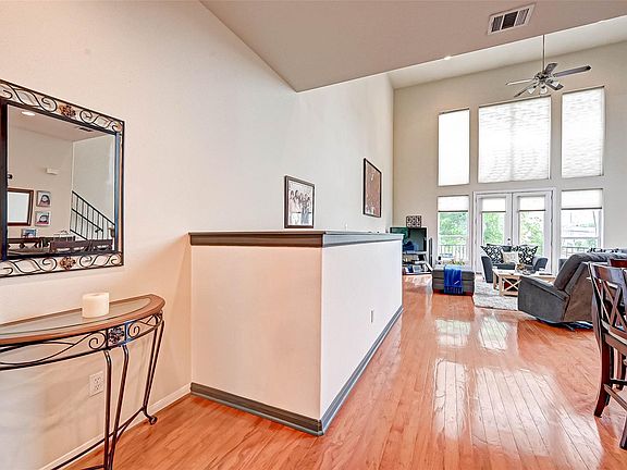Light, bright & airy with towering ceilings and an open concept, modern floorplan. Fabulous and functional wood-style tile flooring. Large living with wall of windows & balcony with CITY VIEWS. Chef-inspired island kitchen with granite counters and stainless-steel appliances. Large loft-style primary bedroom up offering wood style flooring and ensuite with large soaking tub and oversized separate shower. Specious secondary bedrooms on first floor. Green space in front. Plenty to love!