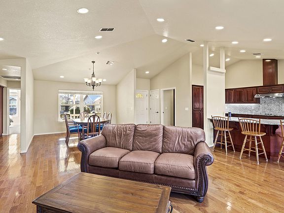 You just found HOME! On a spacious corner lot in a quiet, desirable neighborhood, this beautifully maintained 3-bed 2-bath home offers nearly 1,800 sq. ft. of inviting living space. The open-concept design, vaulted ceilings, and split floor plan create a bright and airy atmosphere, perfect for both relaxing and entertaining. The stunning kitchen truly stands out, featuring granite countertops, a tastefully designed tile backsplash, and ample space for cooking. Unwind in the spa-like primary bath, complete with a jetted tub. Step outside to your private backyard, where a tranquil water feature sets the tone for relaxation. The covered patio offers a great spot to enjoy the outdoors, with room to add a hot tub, garden, or anything else you envision. A recently replaced roof ensures peace of mind, and the oversized garage provides ample storage while still allowing you to park inside. Call now to tour!