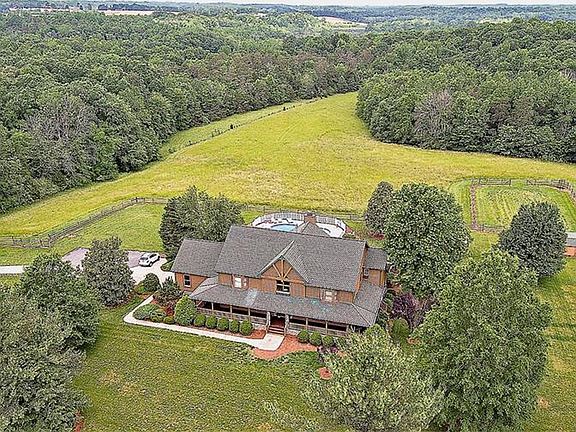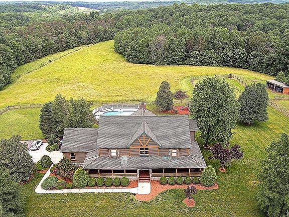 Beautiful log home in a pretty area of Davie County but only 15 minutes from Iredell County. A must-see, wrap-around porch, sunroom overlooking back pastures, Large rooms throughout with loft overlooking the great room. Eat-in kitchen with wet bar, pretty dining room, and office with full bath on the main floor. Loft overlooking Great room w 2 story rock FP, Large master suite. Pretty back deck and pool. Also listed at 3630405 with only approx 3 acres on 120000000904.