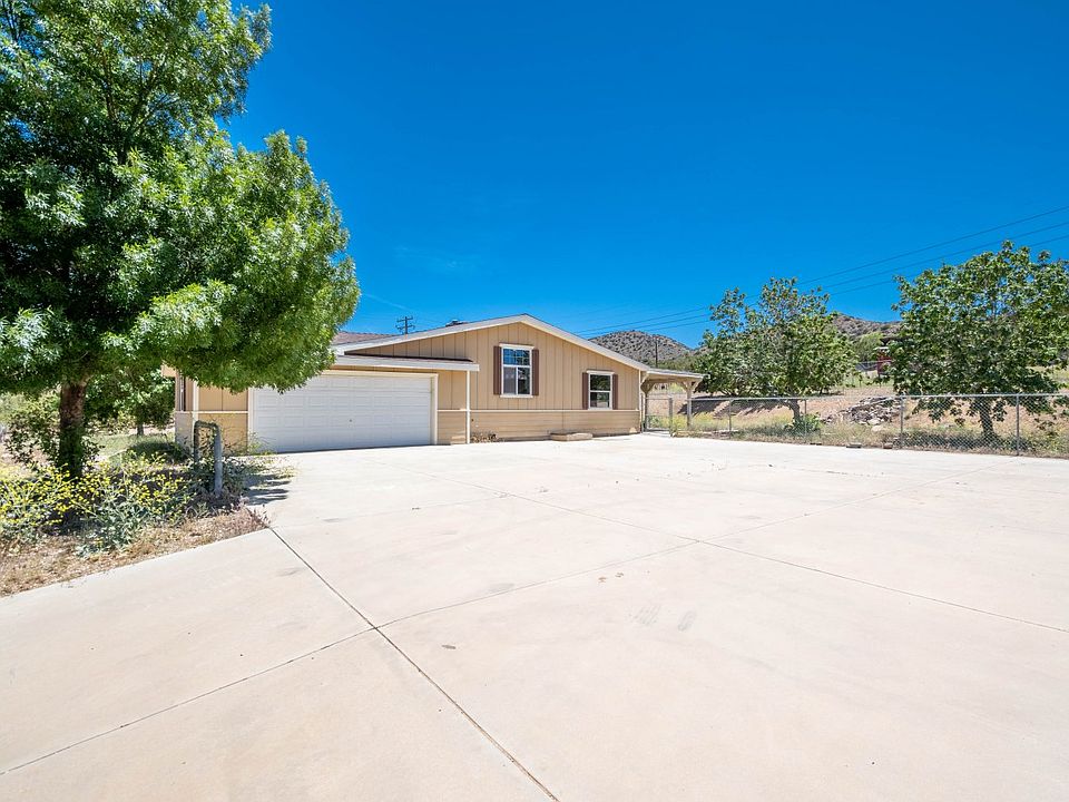 Amazing Acton property located on a little over 5-acres of land. The land features a Manufactured turnkey home with 3 bedrooms and 3 bathrooms. The home has laminate flooring with baseboard moldings, a fireplace in the living room, a convenient laundry room and storage space. The kitchen is equipped with built-in appliances, sleek countertops and lots of cabinet space. There is a large primary bedroom that has a walk-in closet and a private en-suite bathroom. Outside you have a spacious open land, a covered patio where you can add seating and plenty of beautiful views. Property also includes a detached Hanger/garage/storage shed. The detached shed is about 1,800-Sqft, it features full power, 2 roll up doors and has ample space for toys, boats and RVs. You can also use the space for a dream work shop!
