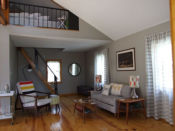 Authentic cedar sided cabin. Currently listed as a vacation rental. Updated inside and out, this listing is an airbnb home run; it's booked 20+ days per month. Mid century modern furnishing match the age of this authentic cedar sided cabin. Would work as a vacation property for DC folks looking for a peaceful retreat from the city. Convenient to the attractions and fine dining of Shepherdstown and Harper's Ferry. Studio with sleep loft could also be used as a home for student or artist living in the area.