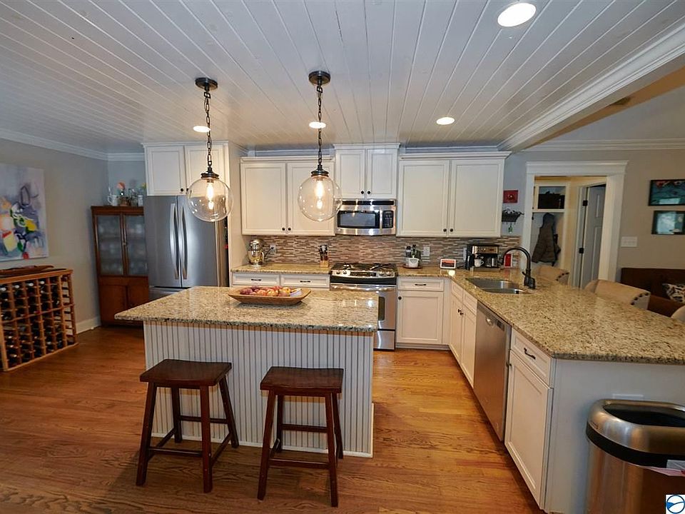 Open House Sunday, January 17th 2-4 p.m. Remodeled one-level home located in Blossomwood Subdivision, in the heart of Blossomwood school district! This ideal location is minutes to Huntsville hospital, downtown, and Monte Sano. Inside, you'll be charmed by the vaulted ceilings, craftsman style trim, and open great room. The updated Kitchen is a stand out with beautiful granite counters, large island, white cabinets, and stylish fixtures. The spacious Master Bedroom features a vaulted ceiling. With 3 additional bedrooms, this home is an ideal size for many families. Outside, the home sits on a roomy flat lot with a great backyard and spacious covered patio. Don't wait to see this one!