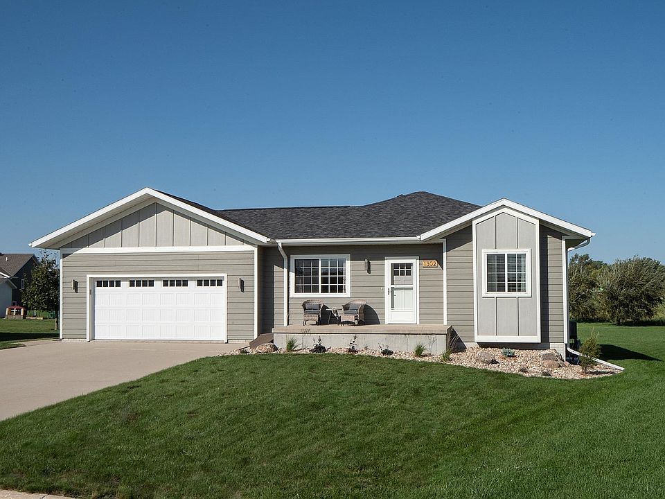 This home is at the end of a quiet cul-de-sac, giving you a quiet living experience. The surrounding area has much to offer, including parks, the popular Puddle Jumper Trail, and a brand-new elementary school only a short distance away—the perfect location for anyone looking to enjoy an active lifestyle. The house has a practical layout that uses space well, offering 9ft. ceilings. The flooring is seamless, so you can easily arrange your furniture to fit your needs. The modern kitchen is efficient, with plenty of cabinets and a large pantry closet. The adjacent dining area provides easy access to the back deck. The main floor has a primary bedroom that comfortably accommodates a king-size bed, with a full bathroom adjoining it. Both the front patio and back deck offer exceptional areas to unwind and enjoy the outdoors. The professional landscape was just installed, and you can enjoy it as it matures. All the necessary amenities are conveniently located on the main floor. The basement has two additional bedrooms, and there's room to install a fourth bedroom with an egress window and closet already there; you need to add one wall to complete it. The garage has sturdy shelving installed, providing ample storage space for your needs. This is an opportunity you don't want to miss!