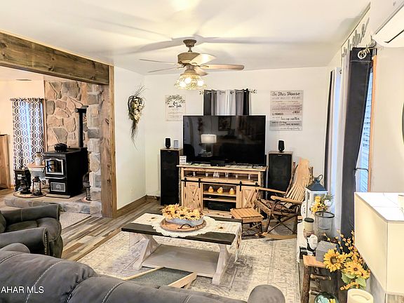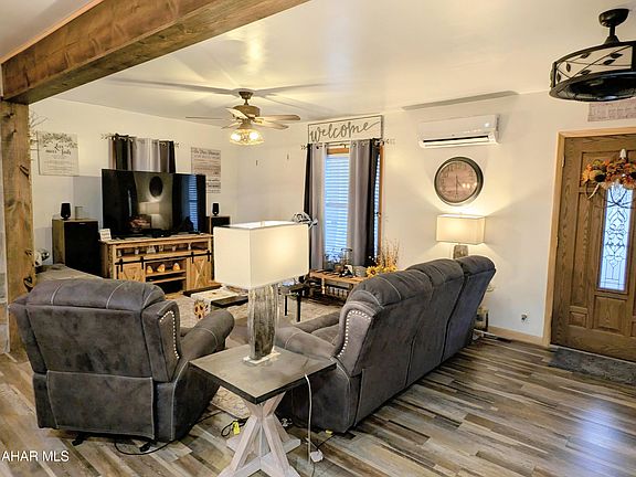 Beautiful, well maintained home in Six Mile Run. Close proximity to state land, Juniata River for fishing, boating, or biking the trails. This home has been recently remodeled and updated. The first floor is an open concept, with a pellet stove and mini splits. The kitchen has an island, custom designed hickory cabinets with farm style stainless steel sink. There is off street parking in back with a commercial size cement sidewalk that leads to a deck with solar lighting. Enter the back of the home into an entry way that leads to first floor laundry and extra large bathroom or to the kitchen. The layout is meticulously designed. This home is a must see!