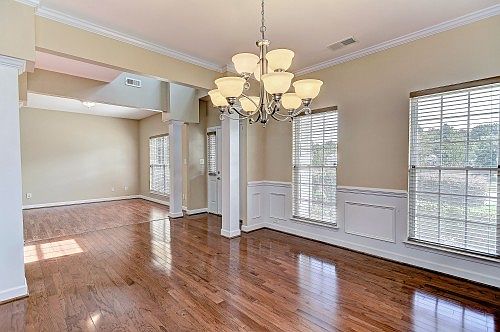 Bright open floor plan shines with beautiful hardwood and tile flooring, extensive moldings, upgraded cabinets with solid surface countertops, elegant formals and an inviting great room with fireplace. You will love the flexibility of a main level guest bedroom and huge bonus/media room. An extended patio overlooks a very private yard with plenty of room for play. Community pool and playground are just across the street. Great location minutes from shopping and dining in Wesley Chapel with low Union County taxes. Covered front porch gives this handsome brick front transitional great curb appeal. A dramatic 2-story foyer welcomes guests. Beautiful hardwood floors accent the foyer and formal dining room. Decorative columns frame both the spacious formal living room and elegant dining room with crown, chair rail and picture frame moldings and brushed nickel chandelier. The foyer flows into the inviting great room with lighted ceiling fan, recessed lighting, easy care wood laminate flooring and a cozy gas log fireplace. Bar seating and columns separate the great room and tiled kitchen with upgraded cherry cabinets, solid surface countertops and center prep island. Contrasting black appliances include dishwasher, smooth top range and microwave. Sunny bay window breakfast nook has a brushed nickel chandelier. Just off the kitchen is a main level guest bedroom with access to the full bath with tile flooring, cabinet style vanity and tub/shower. A trey ceiling with lighted ceiling fan and walk-in closet highlight the generous master bedroom. Deluxe bath features tile flooring, double cabinet style vanity, garden tub, separate shower and private water closet. Three additional bedrooms all have overhead lighting and roomy double closets. The guest bath has a cabinet style vanity and tub/shower. Convenient upstairs laundry room and linen storage are located in the hallway. Huge bonus/media room has overhead lighting, lighted ceiling fan and a double closet. Relax or entertain outdoors on the extended patio surrounded by mature landscaping. Nice level yard has added landscaping and irrigation system. This well maintained home has a new roof in 2015.