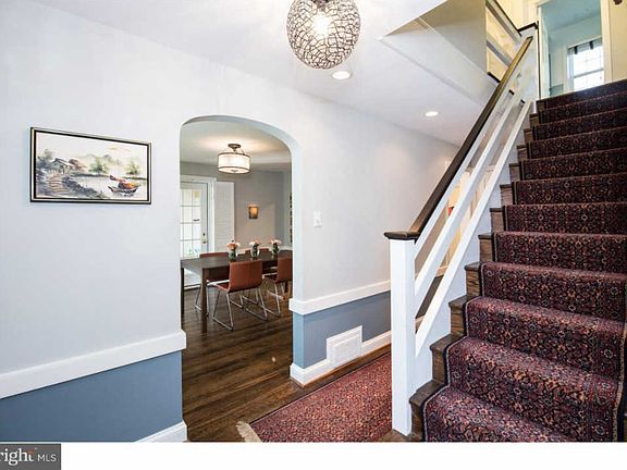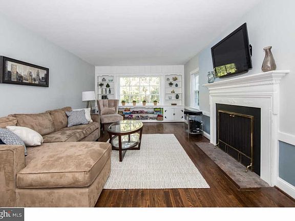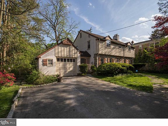 Move right into this well maintained colonial in Narberth Boro. This home sits on half an acre of property . It has a large front yard with detached garage and driveway parking. Walk through the covered breezeway/patio into a lush and expansive yard that is one of a kind. The spacious living room features a wood burning fireplace and large picture window offering views of the gardens bordered by built-ins. The sunny dining room is open to the kitchen and has a shuttered door leading to the open breezeway. A center hall leads to a coat closet, powder room and spacious dry basement offering lots of additional space. Upstairs are two ample bedrooms, a hall bath, and master suite. Two bedrooms have walk-in closets and there is a walk up to a floored attic for lots of additional storage space. This home offers wood floors throughout, lovely built-ins and lots of great character and detail. Brand new HVAC system. Easy to move right in and make it your own with plenty of space to expand. Walk to downtown Narberth and train station. So much to offer here at a great price!
