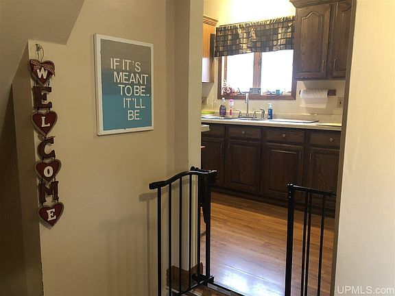 Clean and move in ready three bedroom home! Main floor features a kitchen with breakfast bar, formal dining room, living room, bedroom, full bath and has a covered porch at both entrances. Upstairs are two more bedrooms. In the lower level you will find a nice sized family room and a sauna. The home is situated on a corner lot and has a detached two car garage. Just a few blocks from the highway and down the street from the Ishpeming City Sports Complex.