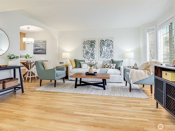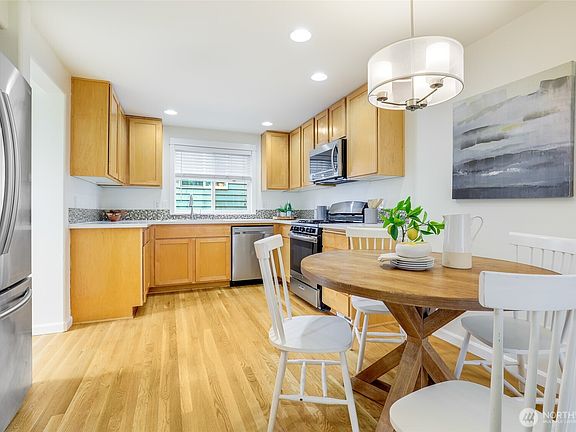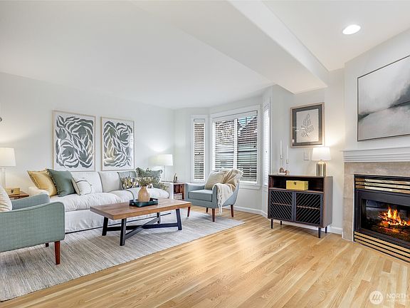 This turn-key, end-unit Green Lake townhome offers affordable city-living. Just blocks from the lake, highways and transit, you'll find the perfect blend of comfort and convenience. The living room features shining hardwoods, gas fireplace and stylish arched doorway flowing seamlessly to the kitchen and dining space. Upstairs are spacious bedrooms with walk-in closets, full bath, and W/D. Enjoy the flexibility of the lower-level bedroom, which can be utilized as an office, guest room, or any other space that suits your lifestyle needs. South facing patio perfect for garden boxes. Easy parking with attached 1-car garage + driveway space. Recent updates include new exterior/interior paint and SS appliances. Inspection available. No HOA.