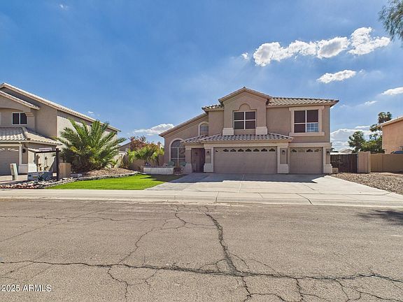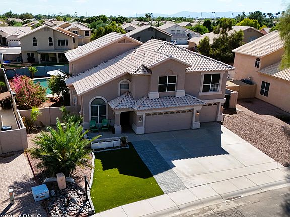 Built in 1994 by Pulte Homes, this two-story home offers a generous 9,906 sq ft lot, providing ample space for outdoor activities and relaxation. The property includes a private pool, ideal for enjoying Arizona's sunny days. Additional features include a 3-car garage, 10-foot RV gate, and a covered patio area.