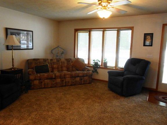 3 car garage, small town living on a quite street! If that's what you want this is the house for you. This house has endless potential, with a large/full basement waiting for a new buyers finishing touches(plumbing for bathroom with shower, drywall ready to be hung, walls have been cut, electrical ran). This ranch offers open kitchen with island to the dining and living room , main floor laundry, master suite, large front porch & deck. Additional to the 3 car Heated Garage the home also has a shed and single car garage. Please contact me today for a private showing 515-570-1452 Margy Halverson-Collins.