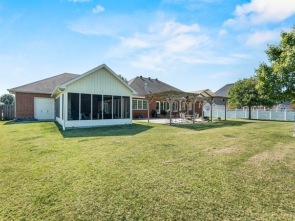 Located in Sikeston's Fairfield subdivision, this stunning, custom-built home offering an open floor plan, and designed perfectly for entertaining family and friends. Some of the highlights include plantation shutters and natural lighting throughout, solid hickory flooring, Sonos throughout the main level of the home, a Butler's pantry with an ice machine and additional cabinet storage, as well as a fully finished basement. The beautifully designed kitchen is equipped with Cambria Quartz countertops, a large island, ample cabinet space, and opens to dining and living spaces (perfect way to spend time connecting with family!) The large fenced-in backyard includes a patio with pergola, as well as a screened-in porch. In the basement you will find a large living area that includes a projector and large screen, perfect for movie nights! The 2-car garage is oversized and insulated, as well as heated, offering a utility sink/counter area. This home is turn-key ready!