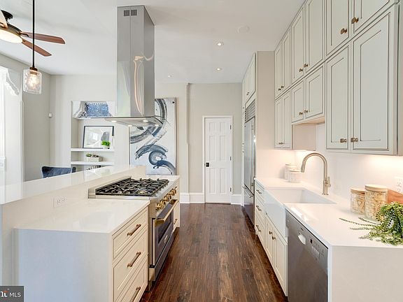 Stunning 2-bedroom, 2.5 bathroom, 2-level renovation of this circa 1885 Logan Circle masterpiece which boasts period architectural details including 11'-high ceilings, mahogany mantle, 2 spectacular gas fireplaces, ornate trim and archways, and original stained glass transom. Modern finishes include recessed lighting on both levels, 5" plank solid hickory hardwood floors, custom ivory wood soft-close kitchen cabinetry with copper trim , high-end stainless steel appliances (Subzero, stainless & brass Zline gas stove, Bosch dishwasher, GE Monogram wine refrigerator and microwave),farmer's sink, kitchen island, with seating, designer hardware, marble bathrooms with shower massage fixtures, wired security system, ample closet and storage space, custom built-ins, and wood blinds throughout. Major amenities include private outdoor flagstone patio solely for this unit's use, 1 assigned and deeded parking space, 2 private entrances, 2 visitor parking spots, and the U Street Metro is just 3 blocks away! Amazon Fresh, Whole Foods Market, Trader Joe's, Michelin star and James Beard award-winning restaurants,14th St corridor, boutiques and shopping are all within a few blocks! Pet friendly, 4-unit boutique building with character, charm & modern conveniences. Look no further!