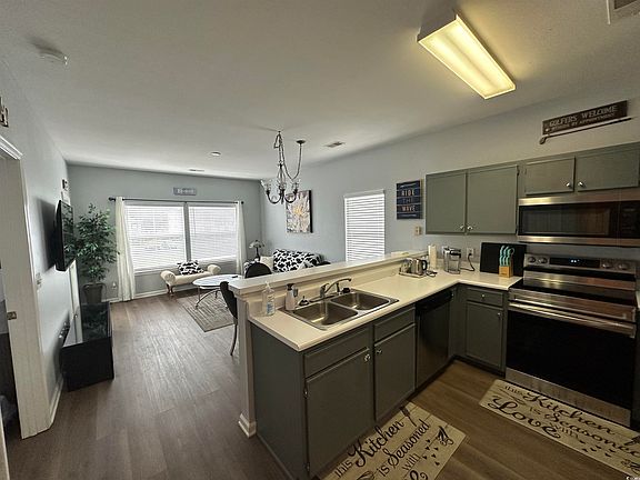 Fairways @ River Oaks Turnkey 1-bed/1-bath condo with peaceful pond & fountain views from private covered balcony. Fully furnished, bright open layout, stainless steel appliances, breakfast bar, in-unit washer/dryer, king bed + queen sleeper sofa (sleeps 4), and large hallway storage. Resort amenities: outdoor pools, hot tub. Steps to River Oaks 27-hole golf, minutes to beach, airport, Broadway at the Beach, Tanger Outlets & dining. Short-term & long-term rentals allowed – strong income history. Perfect primary, vacation home, or investment. Move-in ready – just bring your suitcase!