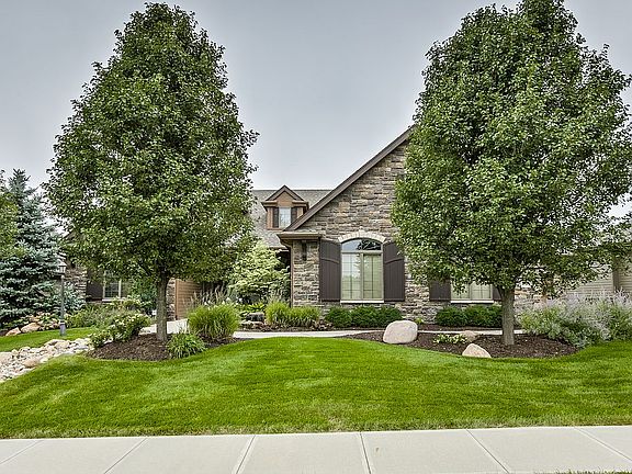 CONTRACT PENDING. Remarkable Walkout Ranch in Elkhorn's Tuscan Ridge! Former Street of Dreams home showcases 2 stone fireplaces, 10' ceilings, wood floors, crown molding, new interior paint (2019), and custom ceiling/window treatments. Gourmet kitchen features alder cabinets, granite counters, stainless steel appliances (6-burner gas range), tile backsplash, breakfast bar with seating, and extra large dinette. Kitchen opens to covered deck and private, treed backdrop. Master suite features spacious walk-in closet, recessed ceiling with fan, and full bath with dual vanity, whirlpool tub, and tile shower. 2nd bedroom has bay window with new interior paint and easy access to full bath. Finished lower level has rec and family areas, European-style wet bar with alder cabinets and stone sitting area. Mature trees, beautifully landscaped, fully fenced, stone paver patio with raised wall, fire pit area, and full sprinkler system.