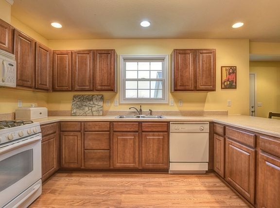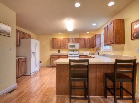 Light and Bright Open Floor Plan features two story foyer, great kitchen with lots of cabinets and counter space, a convenient eating bar and dining area with nice windows for natural light. The family room offers a gas log fireplace and opens to the living room for easy entertaining. Master suite has cathedral ceilings and a large walk-in closet. Full basement for future expansion and lots of storage and full bath rough-in. Relax outdoors on the covered front porch or the back patio. Home has been pre-inspected.