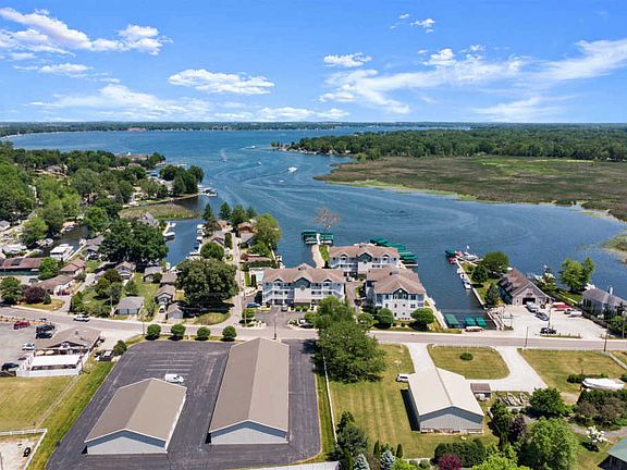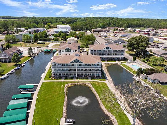 Gorgeous, maintenance-free living w/ stunning view of Conklin Bay in ultimate, prime location! All furniture remains including everyday dishes/pans/silverware, & mini-frig plus custom, Amish-made table/buffetâready for summer lake entertaining! Beautifully updated 3 bed, 2 full-bath condo on Lake Wawasee is completely move-in ready & super clean! Make this your best season yet w/ amazing views of lake & wetlands from kitchen, dining & living area PLUS your very own private balcony w/ ceiling fan for cool comfort in the heat. Enjoy the sound of water from fountain as you grill out, or head to common area lakeside pool (just steps away) for a quick splash. Comes w/ 1 boat slip (can rent another for $250/season) & extended pier perfect for longer boats, along w/ 2 garages. Additional parking for guests across street by garages. Take elevator up & walk through front door into a calm, peaceful retreat w/ light breezy atmosphere. Eat-in kitchen w/ lots of cabinets, SS appliances & wrap-around breakfast bar w/ new quartz countertops! Open floor plan allows for excellent views & natural illumination no matter where you stand! Split dining/living area against wall of windows & sliding glass doors to balcony. Bedrooms are good sized w/ ample storage throughout well-appointed space. Master features en suite & walk-in shower. Updates include: new engineered hardwood, newer paint, nice neutral color palette, new appliances, newer furnace/AC & water heater. Everything you need is right here! From S-W Trail to walking distance to restaurants, shopping, bowling & ice creamâyou donât have to go far! The Frog Tavern, Oakwood Resort & Louieâs Bar & Grill are sure to become your favorite neighborhood spots. Ideal for those looking for simplified, luxury lake living! Macyâs Pointe Condo Association HOA fees cover: water, sewer, garbage, irrigation, pool, pier, ext. building & parking lot maintenance, landscaping, etc. Pier #676
