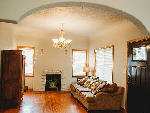 - Description: Wood Floors/ Fireplace/Arched Detail