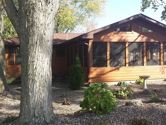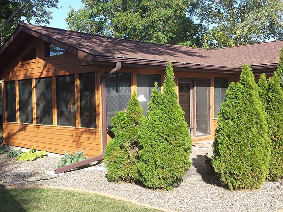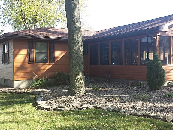 Landscaped & move in ready! 2 bed, 1 full & 1 half bath on main level. Hardwood flooring in livingroom and hallway, installed in 2018. Eat in kitchen/dining area with top of the line amenities includes Custom Built Cabinets & Lighted China Cabinet by Dennis Carson, granite counter tops, ceramic floor tile. Pella windows w/blinds, ceiling fans. 20x20 3-Season Sun Room w/ cedar walls & atrium door w/ 220 electric hook up for hot tub. Concrete siding by Certainteed. Sheeting & shingles, gutters & guards all new 2012; Power vent hot water heater, 90% F/A/G furnace (both vent horizontally); Furnace & C/A new 2020. Fully finished bsmt. (exc. utility room) w/ full bathroom, kitchenette w/ gorgeous, high quality custom-built hickory cabinets by Dunkel's Cabinetry, huge bar-height peninsula that seats 10 guests and provides lots of storage, a large family/rec room with top of the line electric fireplace, office area, and 3rd bedroom with egress window. New energy eff. bsmt. windows 2015. Kitchenette has 12-bottle wine refrigerator and small refrigerator built in under cabinets and an accent wall covered in Airestone to match "chimney" surrounding fireplace adjacent to kitchenette area. Garage has hookup for gas range & outside hookup for natural gas generator. 10x14 storage building. Concrete patio in back.