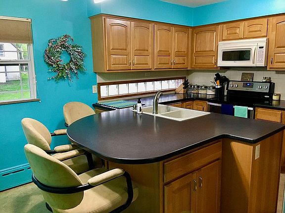 You will not want to miss out on this well taken care of brick ranch home with 3 bedrooms, 4-car garage and finished basement! The beautiful kitchen has updated cabinets, stone corian countertops, a large island, lots of counter space, and newer appliances, all included. You will love the living room with its large windows and plenty of space for entertaining guests or cozying up to the electric fireplace. The main level has a full bath with a beautifully tiled shower and floor. The basement is finished with tile flooring, 2 large rooms which could be used as bedrooms or storage, a laundry room (washer & dryer included), bathroom, storage area, and lots of room for creativity.